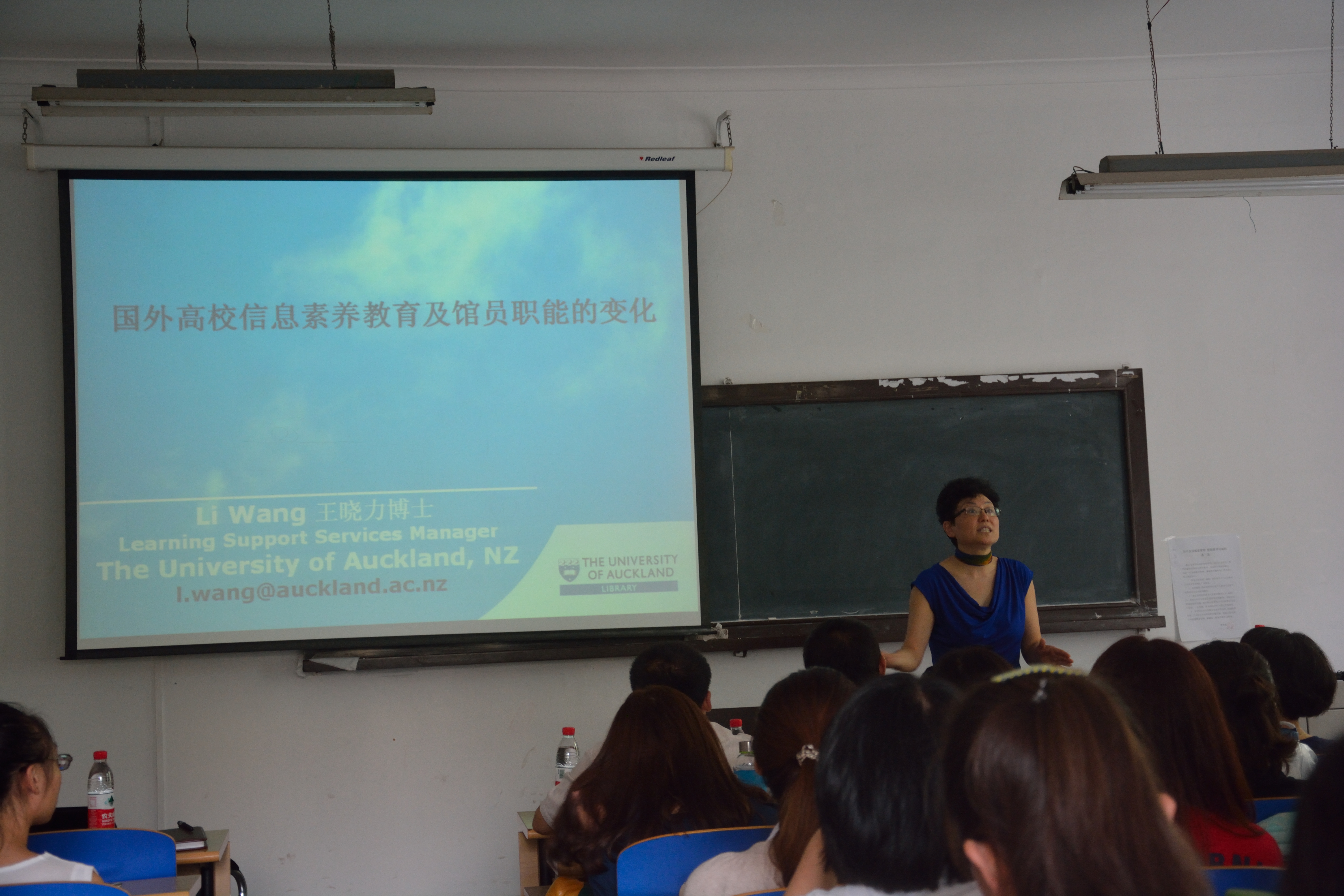 2014年9月5号,新西兰奥克兰大学图书馆研究馆员王晓力博士来我院做了题为《国外高校信息素养教育及馆员职能的变化》的学术报告。报告在我院201多媒体教室举行,由我院科研副院长张秀兰教授主持,学院相关研究领域的教师、图书馆学专业本科生、研究生以及我校图书馆馆长、副馆长及馆员等60余人参加了本次活动。