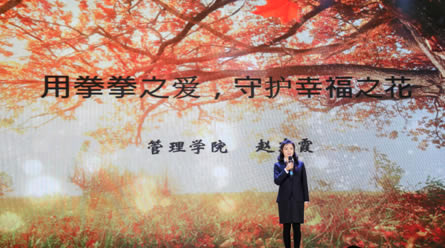 在演讲中,赵东霞老师还提及自己与新疆、西藏等边疆地区学生们的点点滴滴,对即将毕业的学生们心理疏导,答疑解惑。台上的她举手投足,潇洒自如,演讲声情并茂,感染了在场所有的观众。台下的她用行动诠释了教育工作的崇高使命,用成果证实了作为一名教师应尽的责任与义务。正如赵东霞老师所说:“作为一名教师,我是幸福的!”