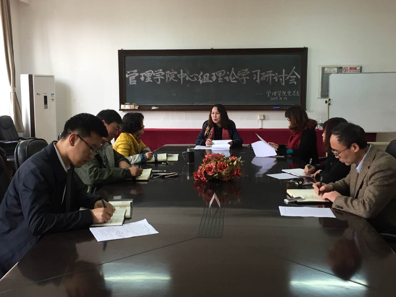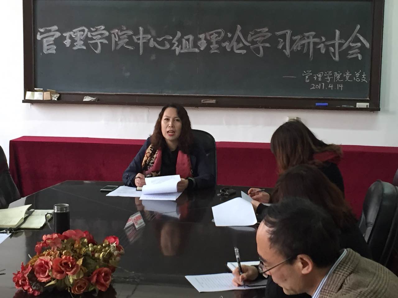 为贯彻落实辽宁师范大学对二级单位党组织理论学习的要求,不断提高领导干部的理论水平和工作能力。2017年4月14日上午8:30,管理学院党总支在学院会议室举办了第一次管理学院中心组理论学习研讨会。我院中心组设组长、副组长及学习秘书各一名。组长由党总支书记刘淑俊老师担任,副组长由党总支副书记于伟老师担任,学习秘书由党总支组织委员唐志建老师担任。本次会议由管理学院党总支书记刘淑俊老师主持,参与人员为管理学院党总支委员及学院领导班子成员。 |