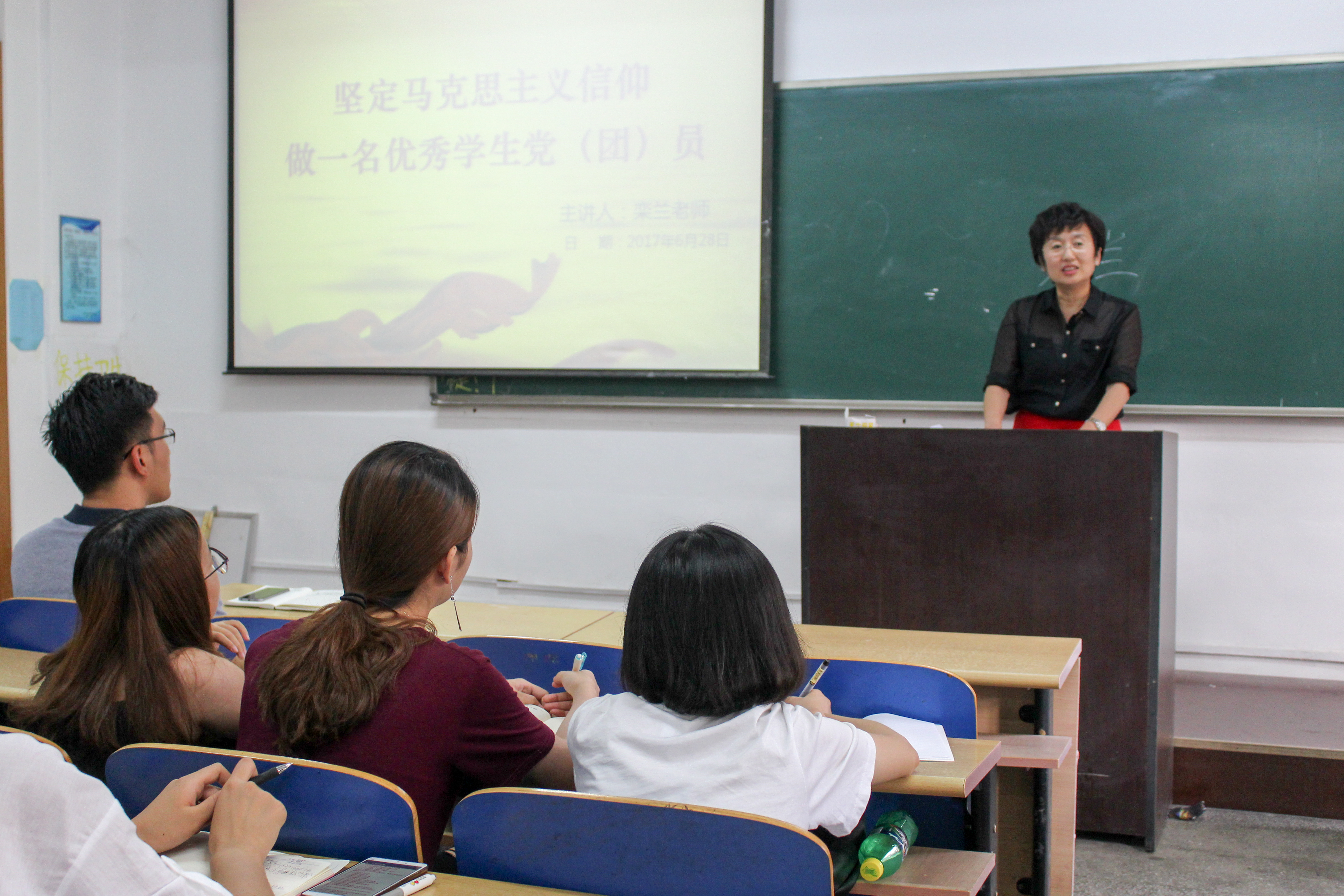 2017年6月28日,校人事处栾兰副处长,来到管理学院本科生党支部做题为“坚定马克思主义信仰 做一名优秀学生党(团)员”的党课。她建议大家在今后的学习中,继续保持最初的热情与求知欲,关心时事政治、充分利用大学时光,积极参与党团组织的各项活动,在实践中学会沟通、积累经验、实现价值。 |