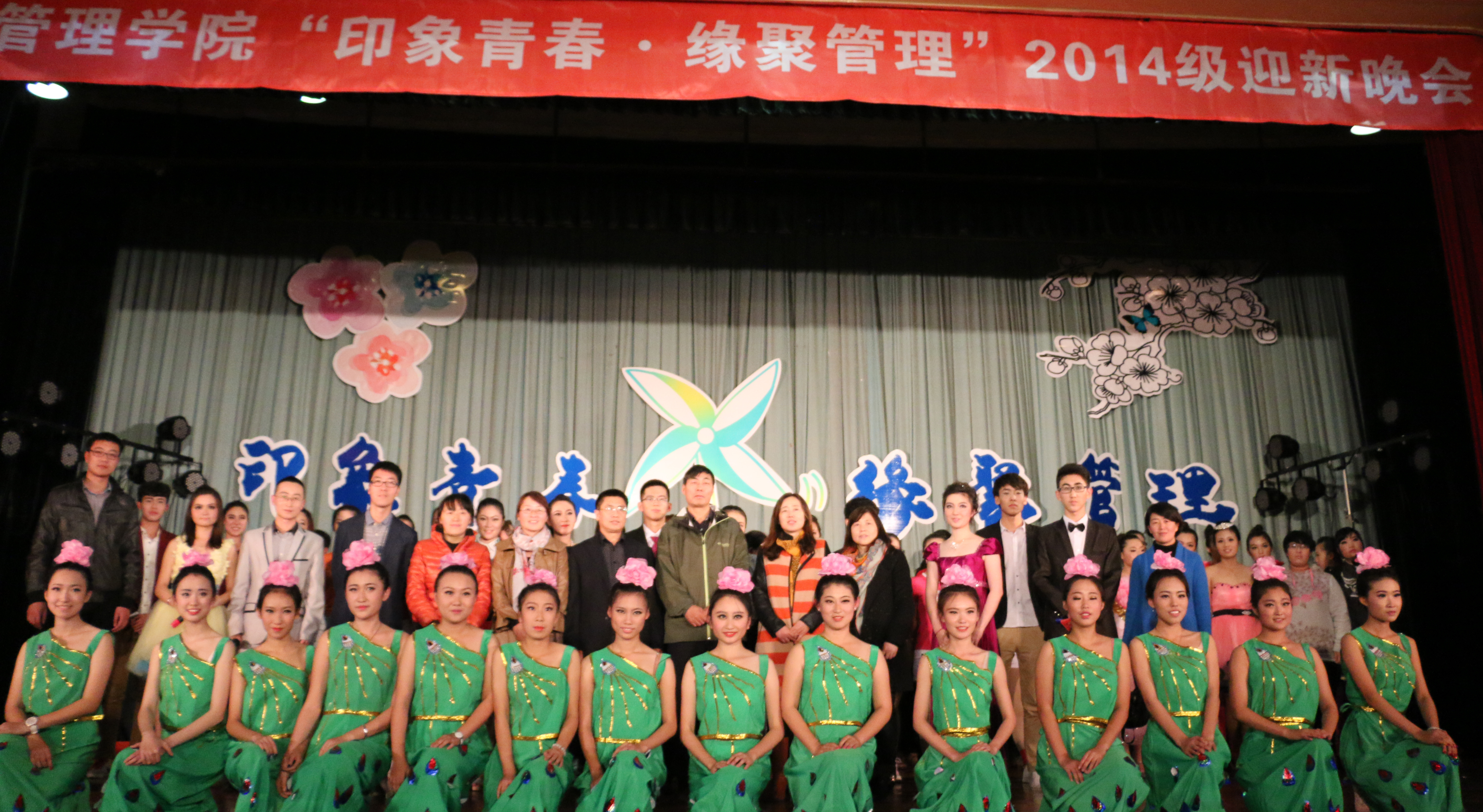 本院讯2014年11月6日管理学院于辽宁师范大学礼堂举办了管理学院2014级迎新晚会“印象青春?缘聚管理”。与会的嘉宾分别有管理学院院长李赖志教授、党委书记鲍艳春老师、管理学院副院长苗秀杰教授、管理学院副院长张季兰教授、管理学院副院长何金荣老师、党委副书记于伟老师、院长助理赵维良老师、团委书记于晓亮老师和各个专业教研室老师。本次晚会节目精彩纷呈,不仅有学生们精心准备的才艺展示,还有老师们积极排演的节目。 |